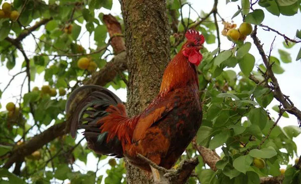 就是说看公鸡的羽毛,散养土公鸡的羽毛光鲜亮丽,尾羽长弧度自然。