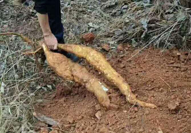 皖南川藏线位于皖南地区,特别适合葛根的生长,在农忙闲暇之余,附近的老百姓就会背着一把锄头,拿把刀,还要带跟麻绳,麻绳的作用是,挖葛根挖出来三分之一左右的时候,用麻绳把葛根的根与藤结合部(这个位置有个榴)绑住,打个结,用锄头抦(方言,就是锄头上面的木头棒子)插进去,用力就会把葛根拔出来,可以节省时间,省点力气。